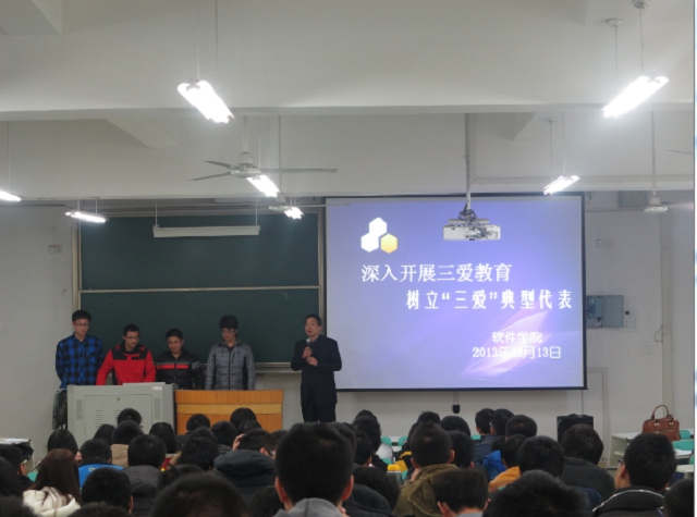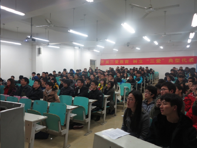 12月13日晚19:00,在翡翠湖校区7教201教室,beat365中文官方网站举办“深入开展三爱教育,树立“三爱”典型代表”主题活动。校党委学工部陈竹老师,学院党委副书记张炳武老师参加了此次活动。