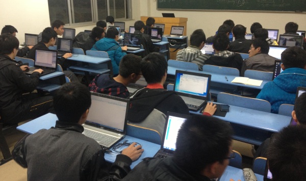 这次由信息部长网杨润青讲解了应用CSS语言对网页上得文字进行简单的控制,并且讲练结合,在细细讲解后给同学们留了相应的随堂练习让同学们进行实践。由于教室设备不给力,杨部长便辛苦的在黑板上书写知识点,并同时让同学们不断的在自己电脑上实践,练习。