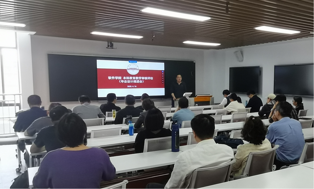 为扎实推进本科教育教学审核评估工作,进一步提升毕业设计质量,4月16日下午,beat365中文官方网站在翡翠科教楼B805开展“迎接本科教育教学审核评估系列活动——毕业设计推进会”,软件工程专业2025届全体本科毕业设计指导教师参加了会议。副院长薛峰做毕业设计推进会报告。